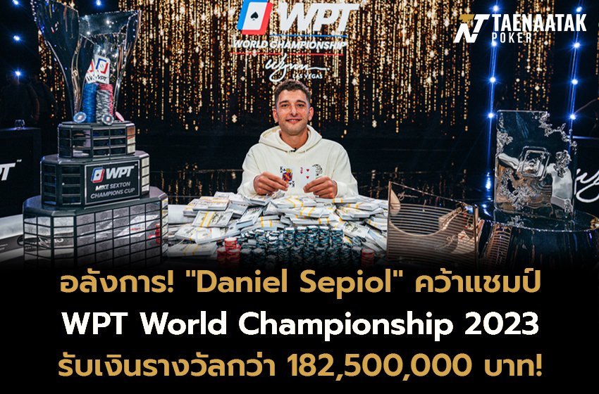 อลังการ! “Daniel Sepiol” คว้าแชมป์รายการสุดยิ่งใหญ่ WPT World Championship 2023 ที่จัดขึ้นโดย World Poker Tour ณ เมืองลาสเวกัส ประเทศสหรัฐอเมริกา รับเงินรางวัลสูงถึง 182,500,000 บาท จากค่าสมัคร 350,000 บาท